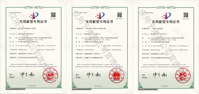 近日,中國化學四化建港晨公司傳來創新捷報,由其自主研發的“灌注樁澆筑裝置”“后澆帶無支架體系支模施工裝置”及“鉆孔灌注樁鋼筋籠抗上浮裝置”3項核心技術,正式通過國家知識產權局審批并獲得授權。至此,港晨公司累計獲得國家授權專利10項,進一步夯實了在建筑施工領域的技術領先地位。