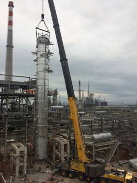 華南分公司成功吊裝惠煉二期項目溶劑再生塔