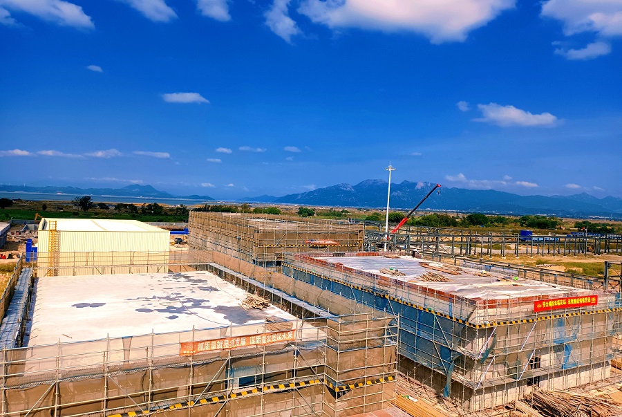 該項目位于福建省古雷石化產業園區,基礎形式為樁基礎,結構形式為鋼筋混凝土框架結構。自2022年7月開工以來,項目部全員克服施工圖紙嚴重滯后、夏季高溫天氣、疫情等影響,積極與業主、設計、監理溝通,倒排施工進度計劃,增加作業人員和施工周轉材料,合理安排施工。