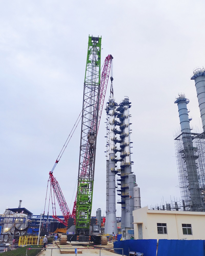 該項(xiàng)目大件設(shè)備共兩臺(tái)T-602A/B),設(shè)備單重均為150噸。為順利完成此次吊裝任務(wù),項(xiàng)目部采用高強(qiáng)度大規(guī)格鋼絲繩,在確認(rèn)鋼絲繩額定負(fù)載和所有鋼絲繩完好情況下,現(xiàn)場(chǎng)多次進(jìn)行起重低空試運(yùn)行,確保一切正常后方正式起吊。在吊裝中,項(xiàng)目施工人員采用400噸和650噸兩臺(tái)履帶起重機(jī),順利將大件設(shè)備吊裝就位,如期完成施工階段第一個(gè)關(guān)鍵節(jié)點(diǎn),獲得業(yè)主、監(jiān)理的一致贊譽(yù)。通訊員 孫善義)